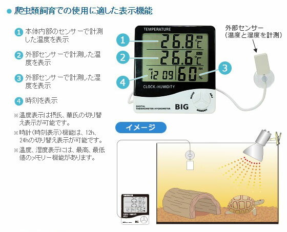 カミハタ デジタル温湿度計 BIG 【爬虫類・両生類/照明・温度管理グッズ】