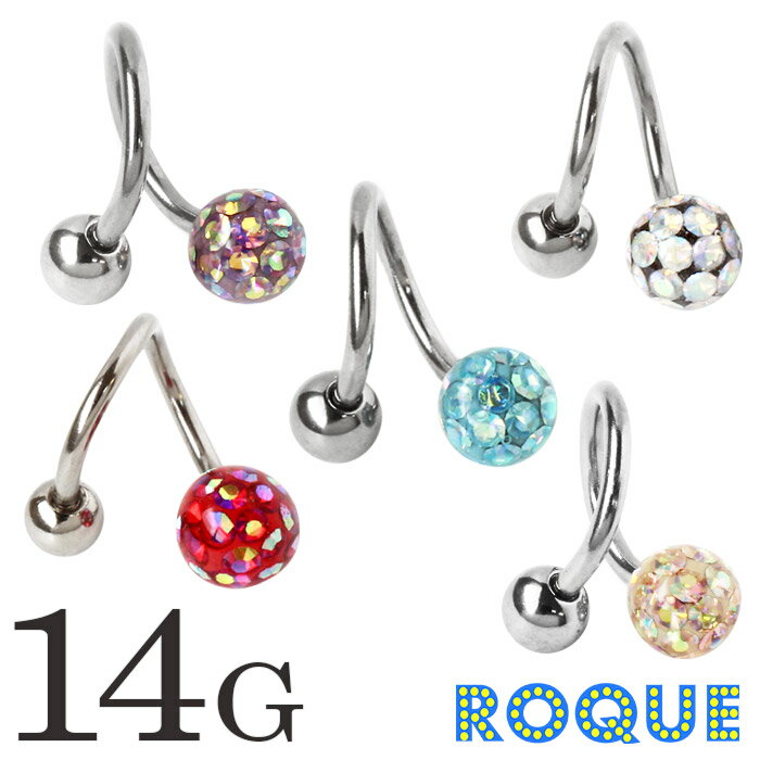 スパイラルバーベル ボディピアス 14G キラキラコーティングパヴェ MasterJulian・de【ROQUE限定】(1個売り)◆オマケ革命◆
