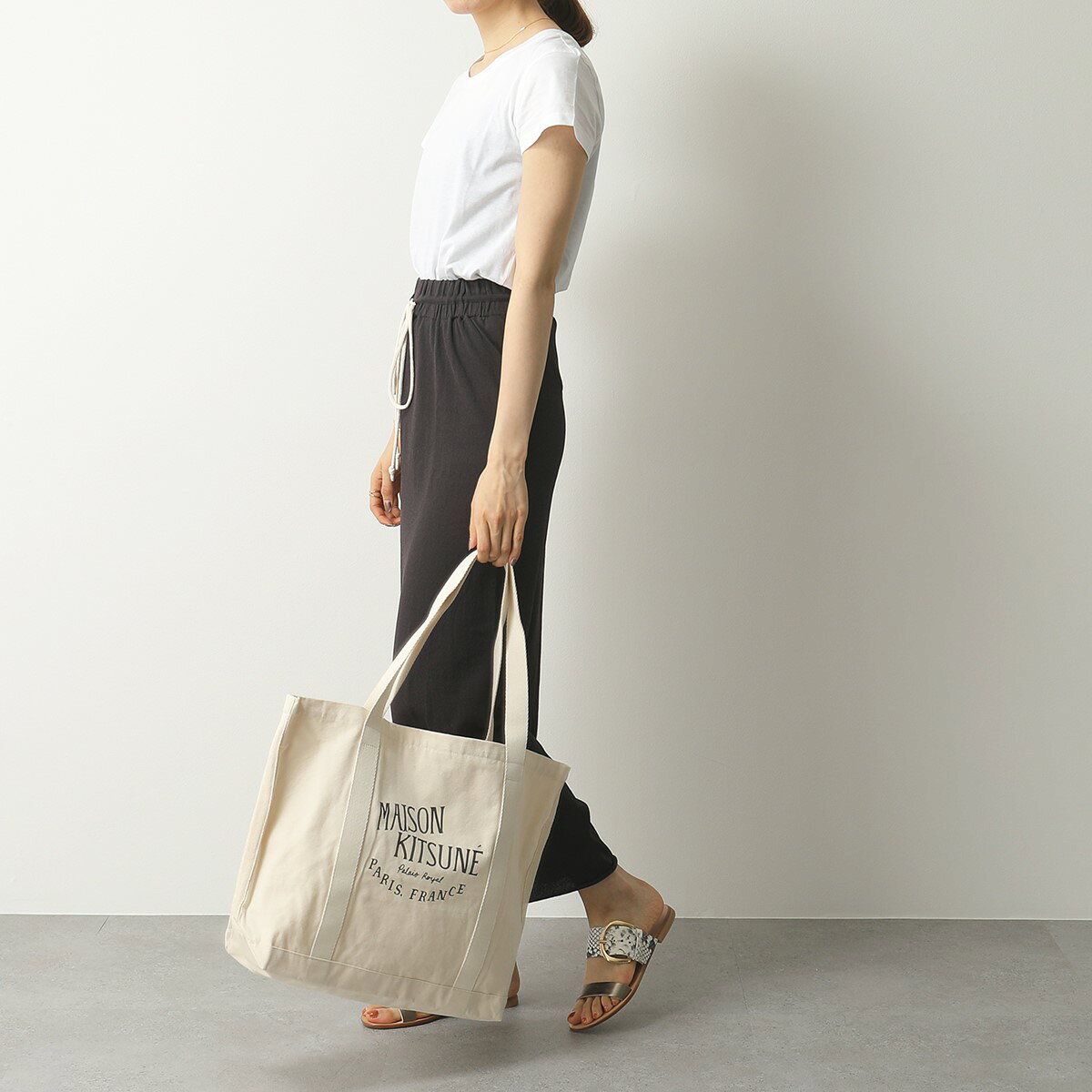 Maison Kitsun? Palais Royale, Paris France部分がプリントされたトートバッグ。