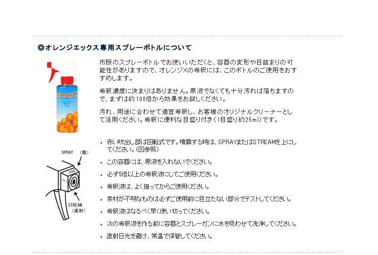 オレンジエックス希釈専用スプレーボトル オレンジクオリティ オレンジX 液体洗剤希釈専用スプレーボトル 4952211000033 #w-112279