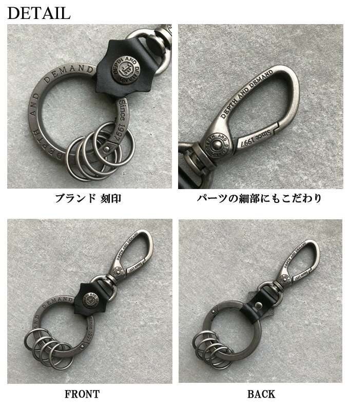 キーホルダー レザー 革 おしゃれ ブランド メンズ レディース カラビナ キーリング かっこいい 母の日 4連 高校生 大学生 ビジネス DEPTH AND DEMAND 【KH20】