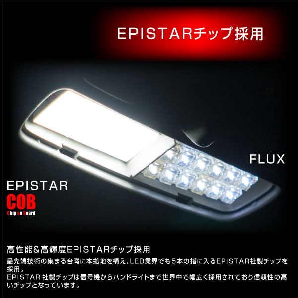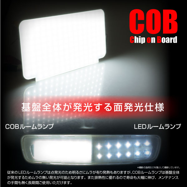 商品説明 基盤自体に小型LEDチップを実装するCOB(チップonボード)技術を採用した超高輝度ルームランプ。
